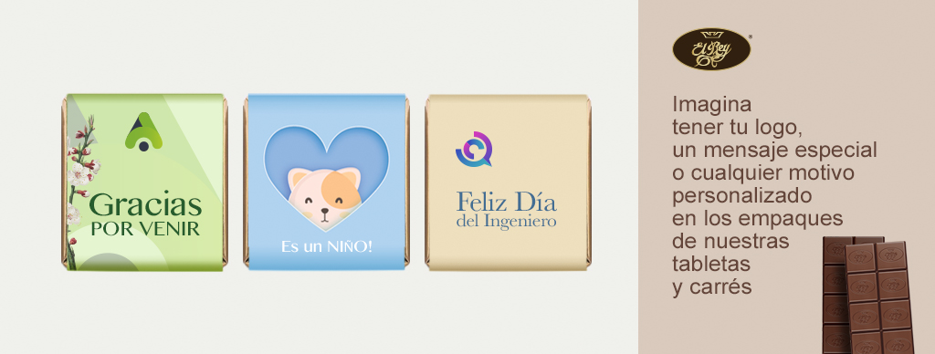 Imagina tener tu logo, un mensaje especial o cualquier motivo personalizado en los empaques de nuestras tabletas y carrés