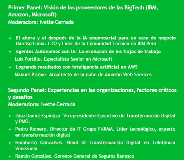 Durante el encuentro, Romero formó parte del panel central titulado «Experiencias en las organizaciones, factores críticos y desafíos». En este espacio, compartió escenario con homólogos de empresas de gran envergadura y evidenciaron cómo las grandes corporaciones están integrando inteligencia artificial (IA) no solo como una herramienta, sino como un eje transversal para la eficiencia operativa.