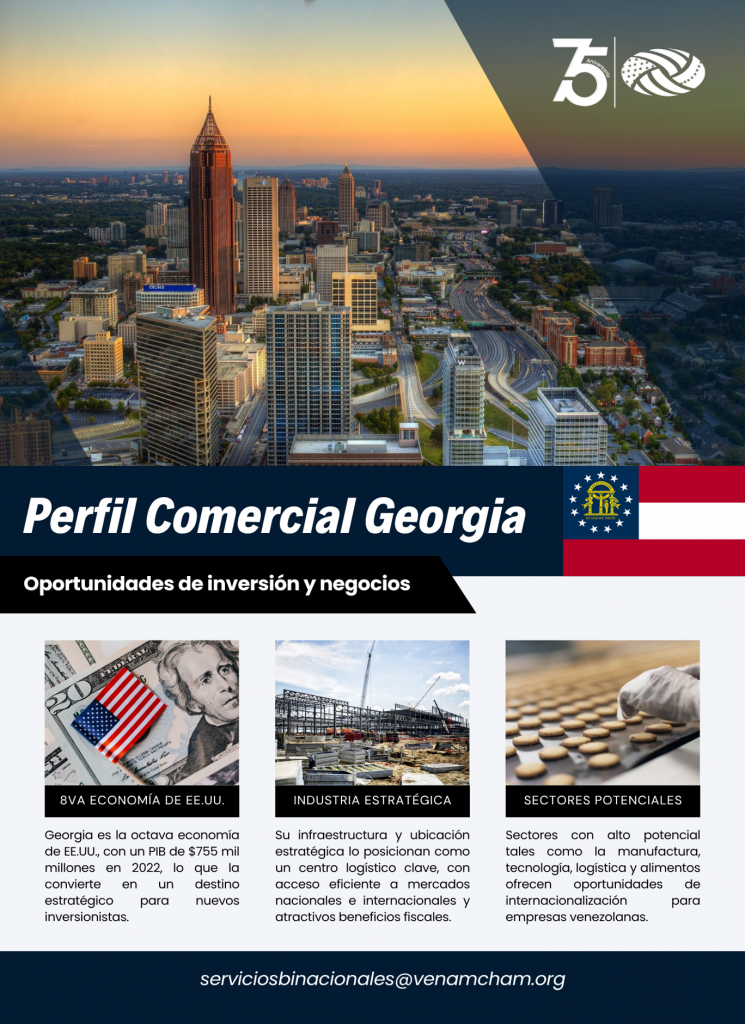 El robusto crecimiento económico del Estado de Georgia, su infraestructura internacionalizada y un ecosistema empresarial dinámico lo convierten en un destino ideal para hacer negocios, especialmente para inversionistas venezolanos.