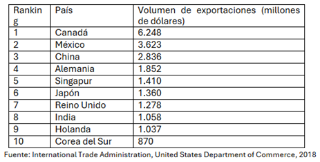 Para 2017, Estados Unidos exportó productos con un valor de 37.223.000 dólares a través de Georgia, lo que supuso un 2,41% sobre el total de exportaciones estadounidenses al mundo por lo que se situó como el duodécimo estado que más exportó del país. Especialmente el destino de las exportaciones se centró en Canadá, México, China.