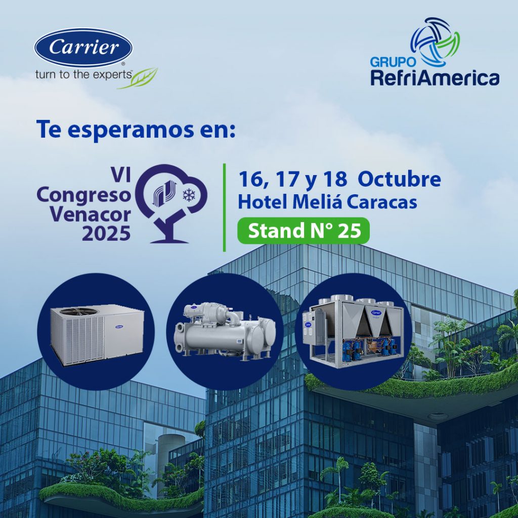 • El viernes 17 de octubre, de 11:15 a.m. a 12:00 p.m., el Ing. Nestor Sánchez ofrecerá una charla dedicada a la línea de producto Chiller Carrier para Venezuela, presentando sus características, aplicaciones y beneficios concretos para proyectos locales.